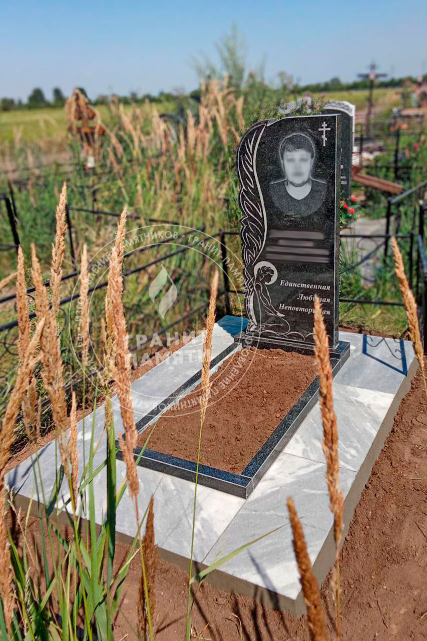 Гранитный памятник изготавливается из натурального высококачественного гранита, который на протяжении десятилетий сохраняет свой безупречный внешний вид. Камень поставляется из проверенных месторождений и отличается высокой плотностью, минимальным водопоглощением и исключительной устойчивостью к перепадам температур, ультрафиолету и механическим воздействиям.