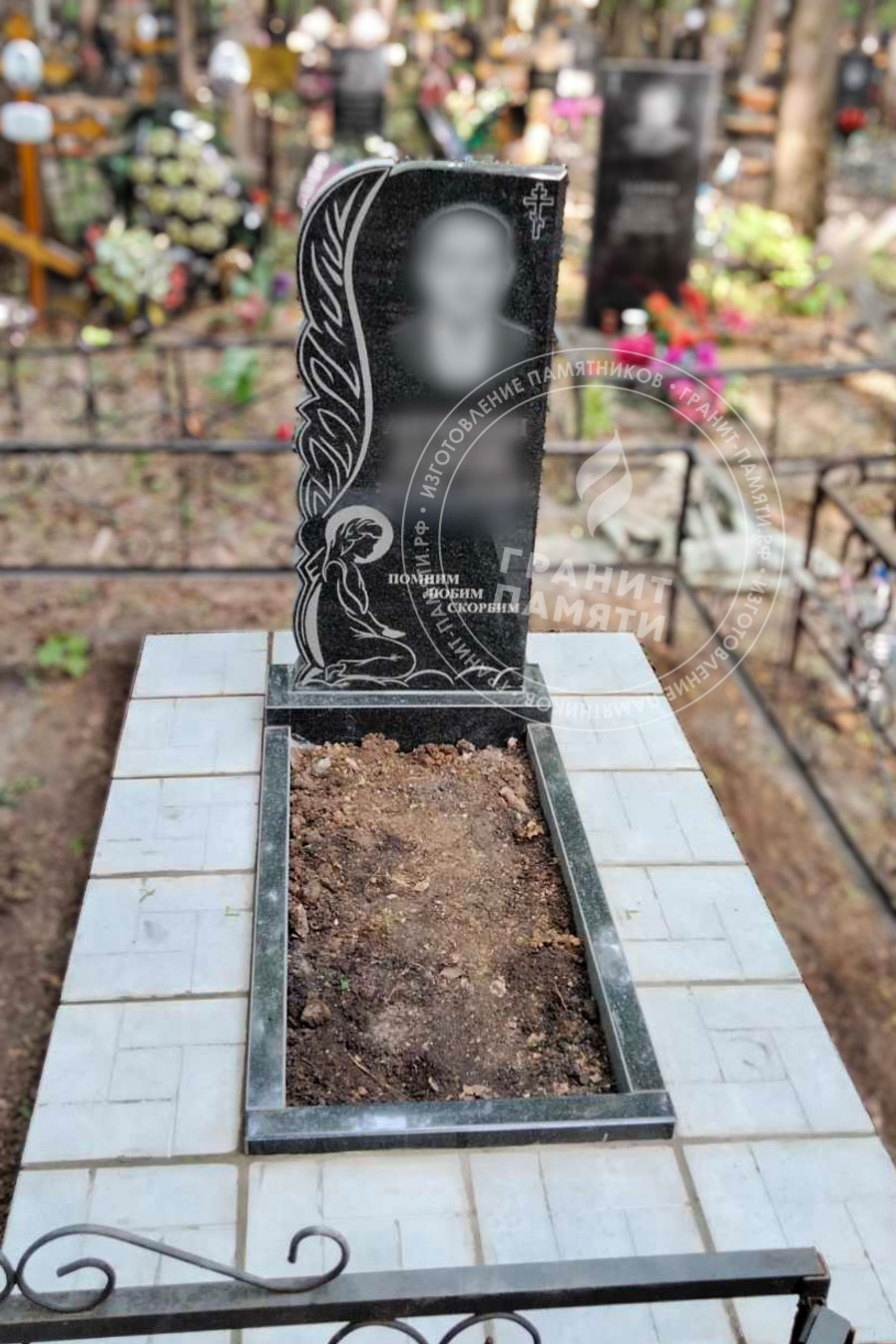 - Доступен в разных комплектациях: с цветниками, с надгробными плитами и т.д.