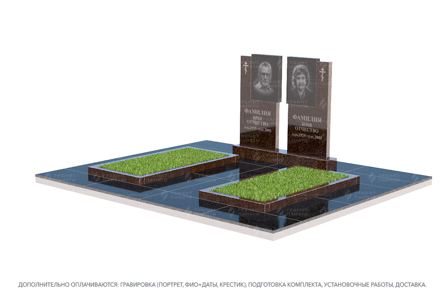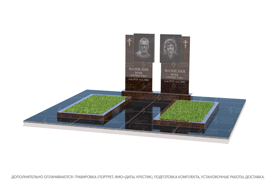 Дополнительно оплачиваются: гравировка (портрет, ФИО+даты, крестик), подготовка комплекта, установочные работы, доставка
