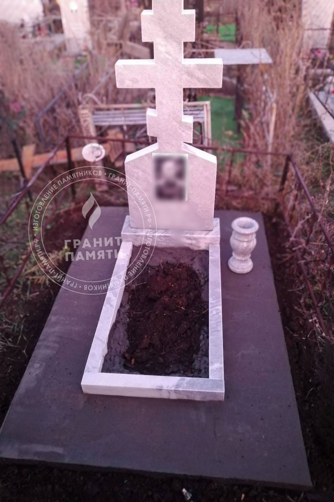 цветник, сверловка, портрет, ФИО+даты, крестик, доставка, установка.