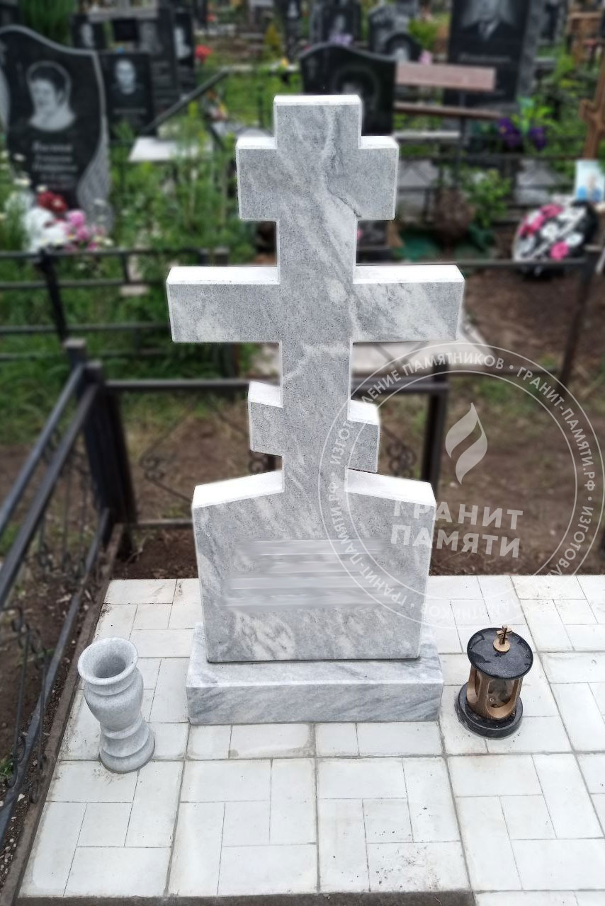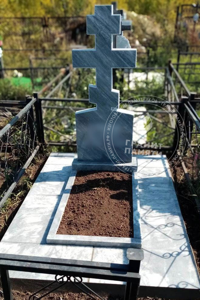 Мраморный памятник изготавливается из натурального мрамора Полевского месторождения — одного из самых известных и качественных российских мраморов. Этот благородный камень светло-серого цвета с характерным природным рисунком, обладает уникальной текстурой, которая подчеркивает торжественность и элегантность любого мемориального сооружения.
