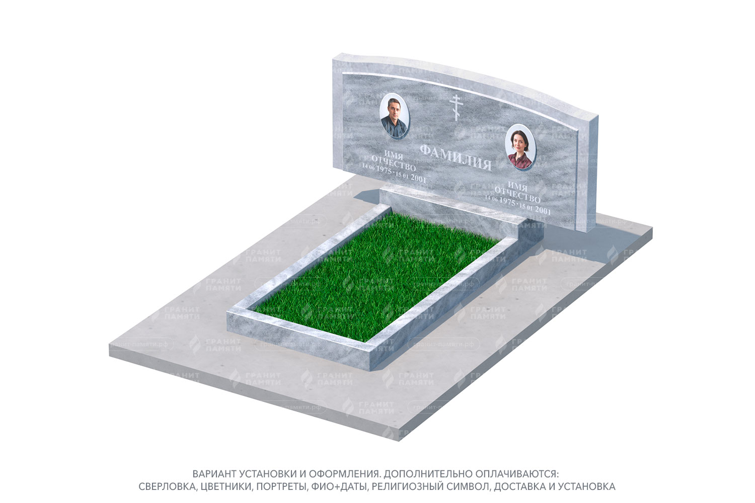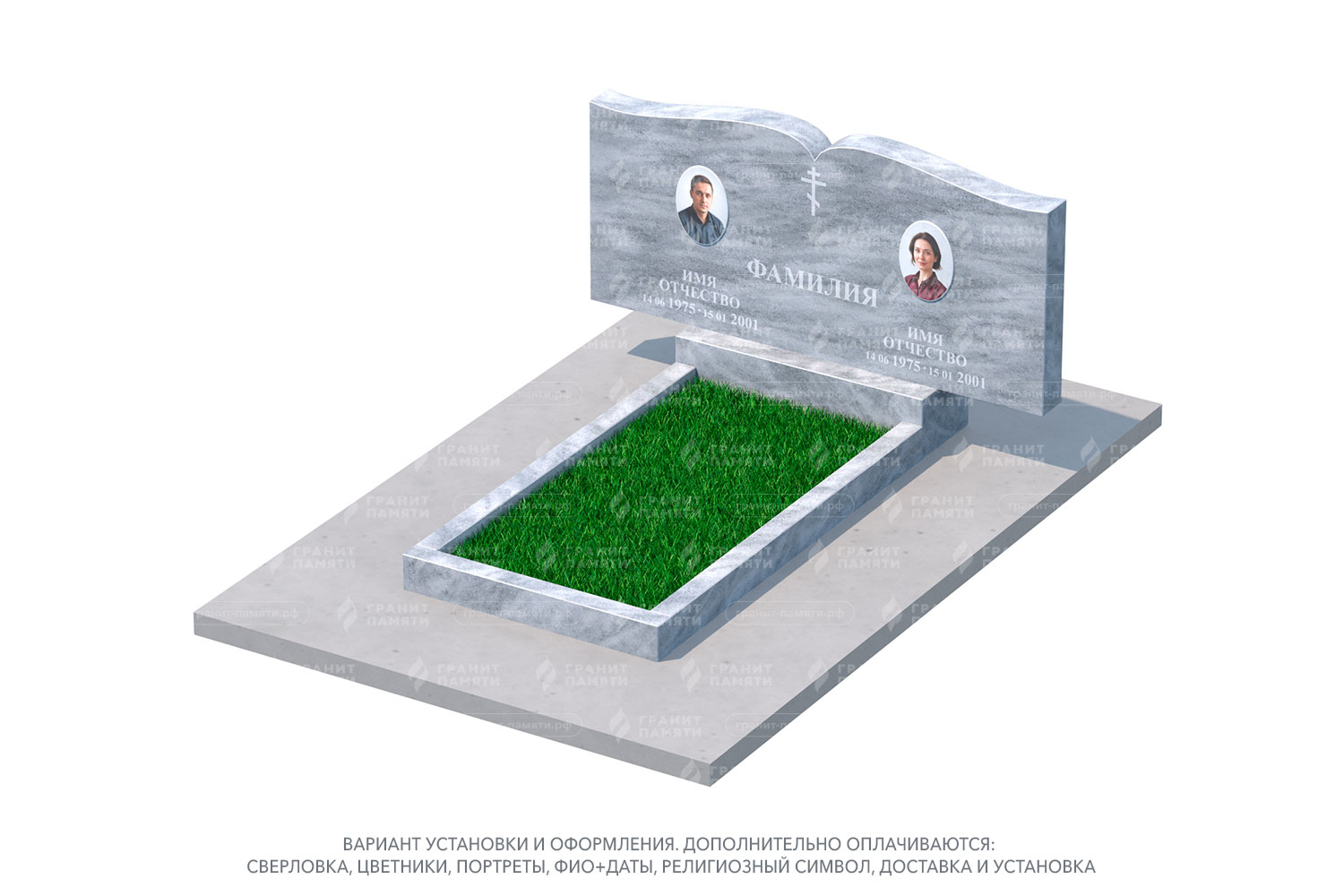 Мы можем добавить портреты на фотокерамике, гравировку с именами, датами и эпитафиями, а также декоративные элементы.