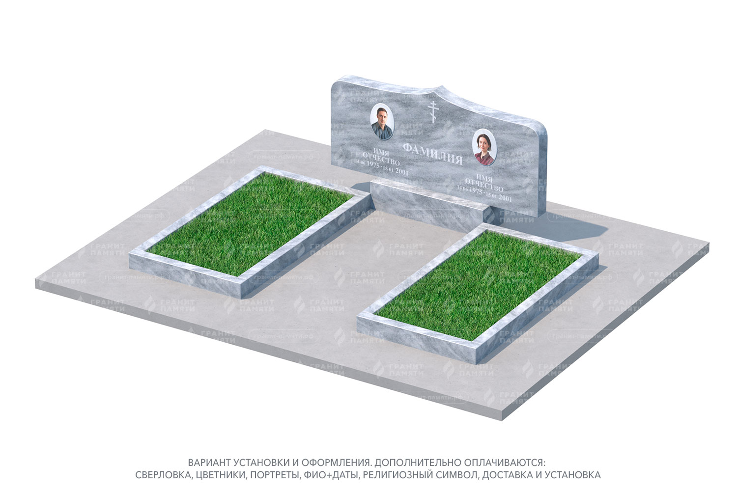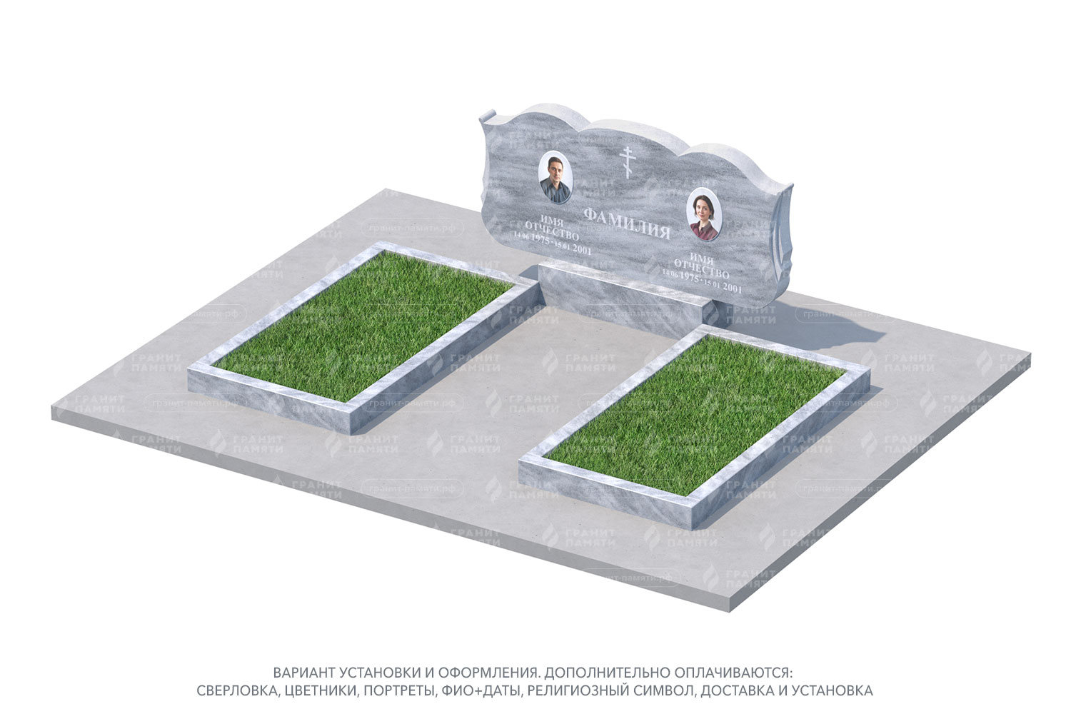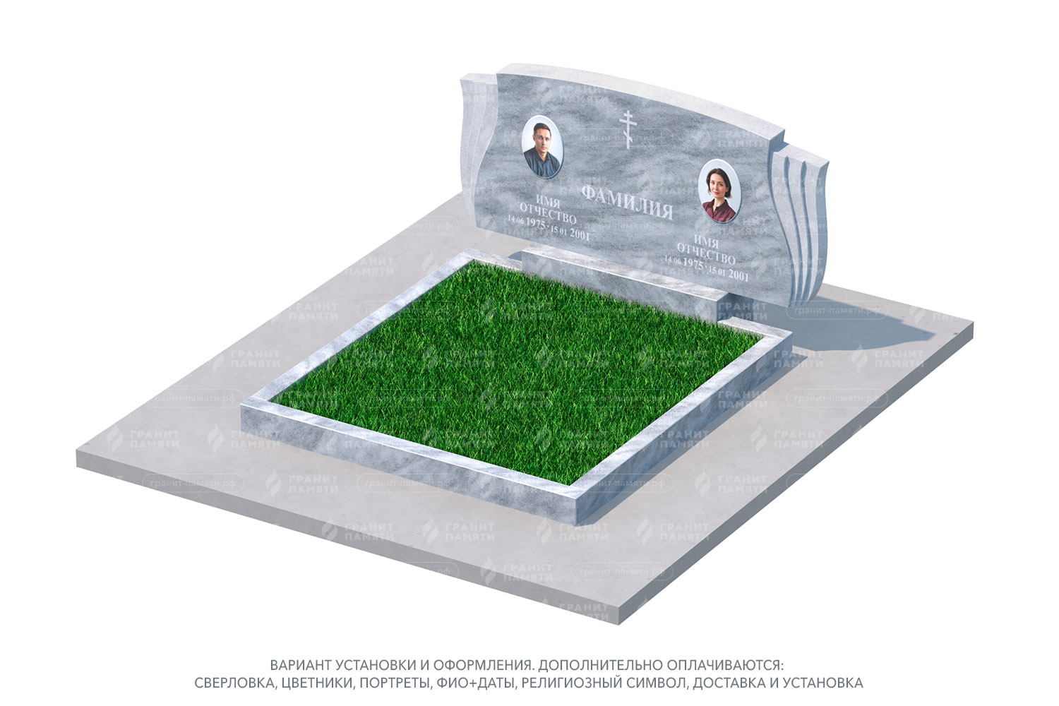 Какие элементы можно добавить к двойному памятнику?